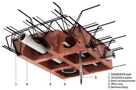 Desenvolvido para vencer grandes vãos, é indicado para hospitais e escolas a HOLEDECK é um sistema de laje de concreto vazada que pode acomodar cabos, canalização ou dutos de ventilação.
